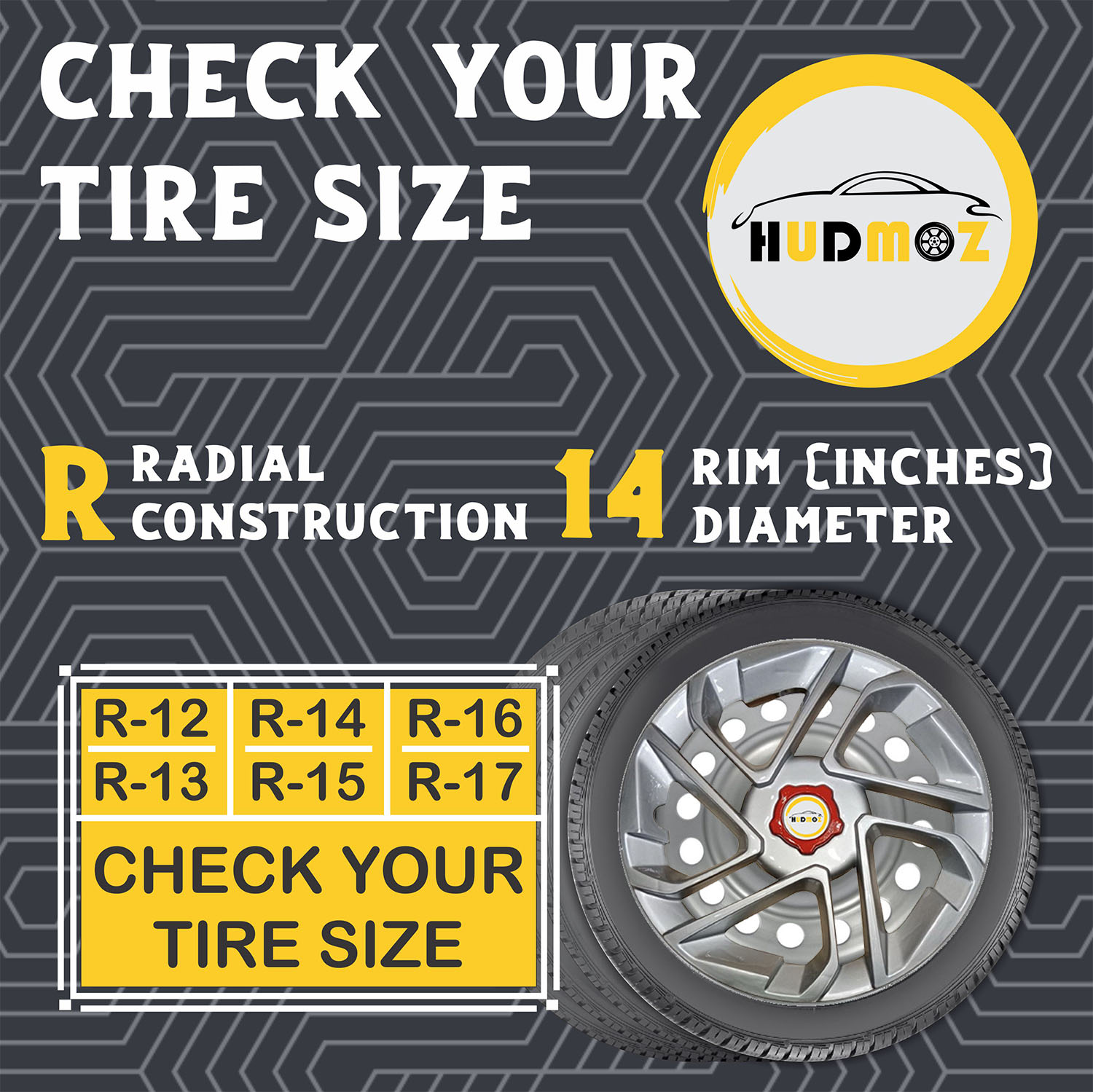 Car Universal Wheel Cover I HubCaps I (ANTIQUE SILVER) Compatible With R - 14'' Inch Rim Size