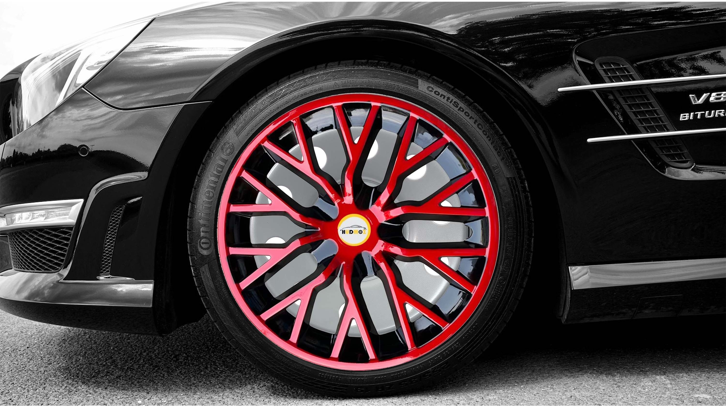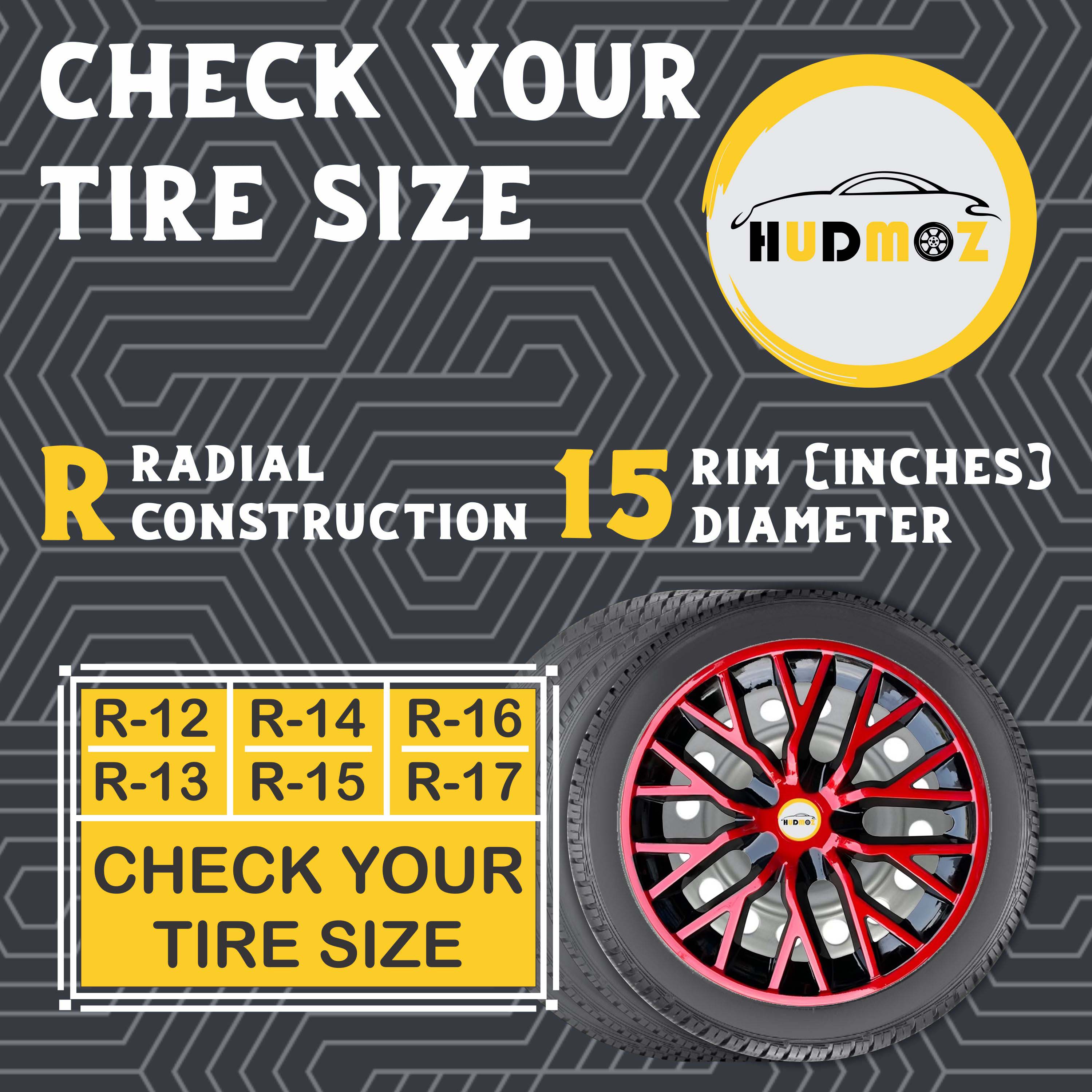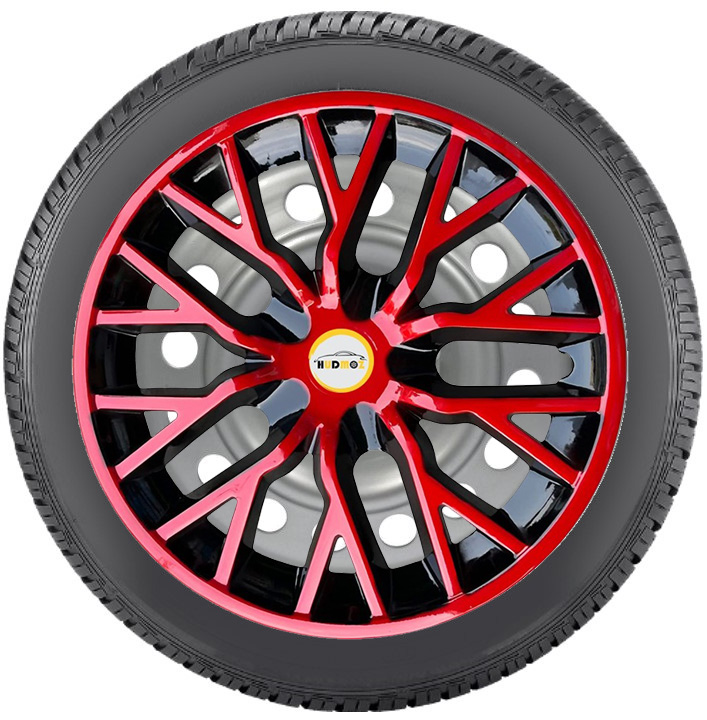 Car Universal Wheel Cover I HubCaps I (Delta Red Black) Compatible With (R - 15'' Inches Rim Size)