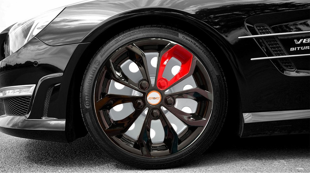 Car Wheel Cover Universal Fury Red Strip Black Color Design Available 12'' 13'' 14'' 15'' 16'' 17'' inches Size Compatible With - R17 Wheel Size